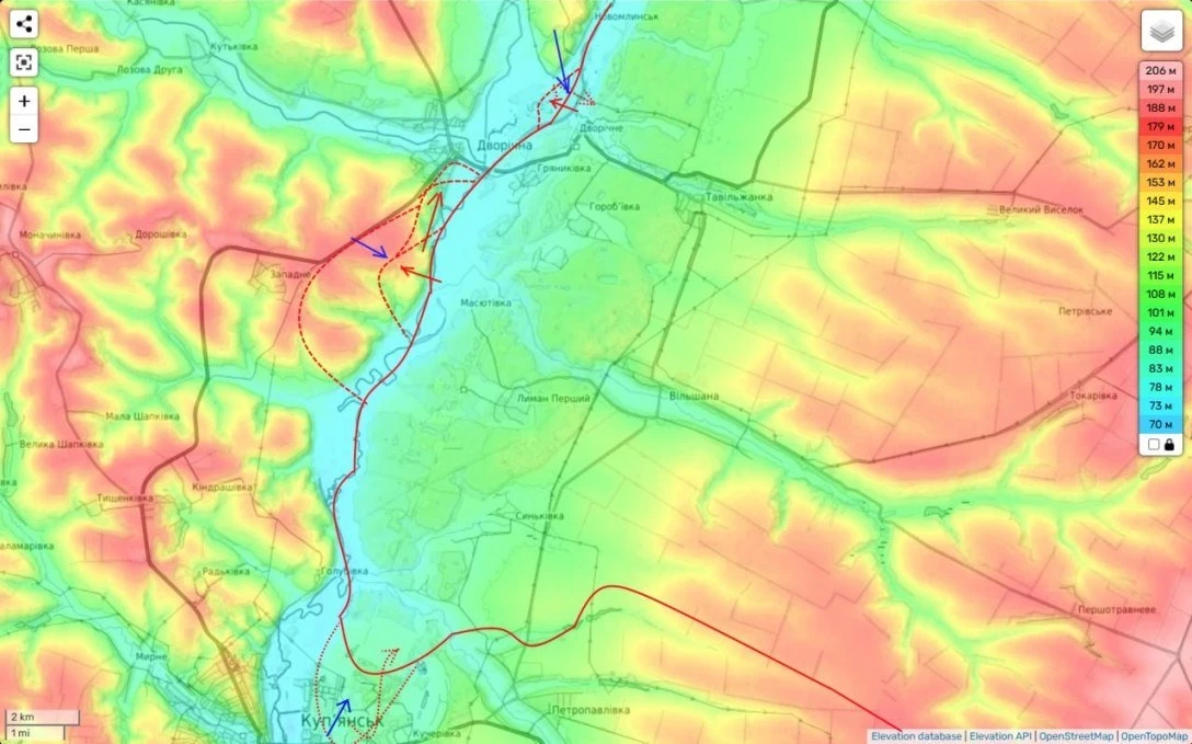 На Купянском направлении головной болью противника постепенно становится наш плацдарм на западном берегу Оскола севернее Купянска (в районе н.п. Двуречная).