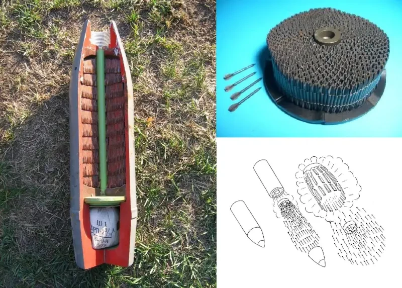 Одна из них представляла собой как раз массивные вольфрамовые стержни, предназначенные для поражения заглубленных целей, a вторая — большое количество малоразмерных вольфрамовых готовых поражающих элементов (ГПЭ), накрывающих объекты на поверхности на площади в несколько гектаров.