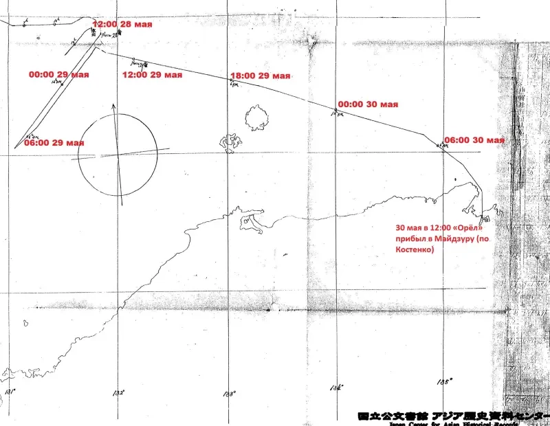 Маршрут движения «Орла» в Майдзуру.