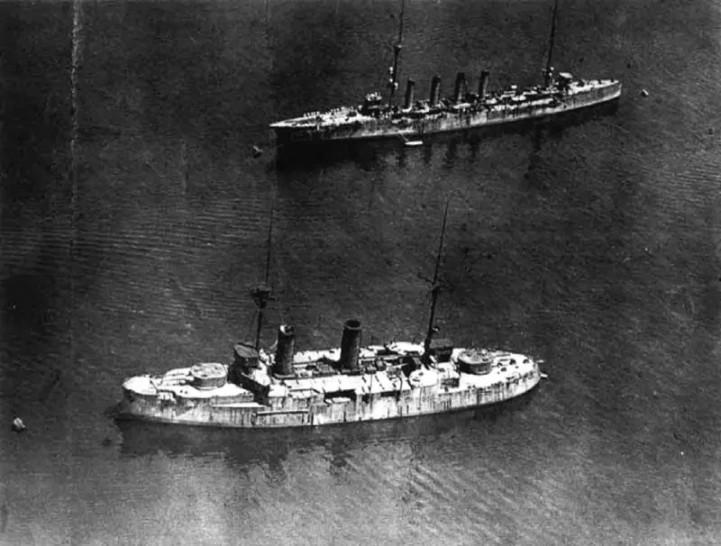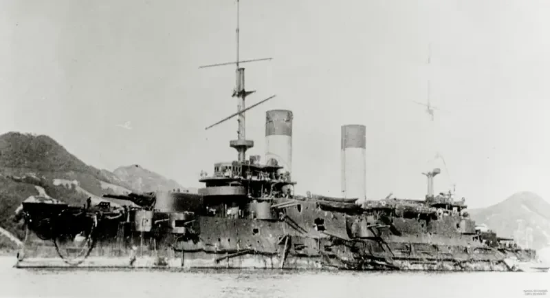 28 мая (здесь и далее даты приведены по новому стилю) 1905 года эскадренный броненосец «Орёл», примкнувший к отряду контр-адмирала Н. И. Небогатова, вместе с тремя другими броненосцами был сдан японцам. Часть членов экипажа «Орла» была размещена японцами на броненосце Asahi вместе с основными силами Объединённого флота и трофейными кораблями, взявшего затем курс на Сасебо.