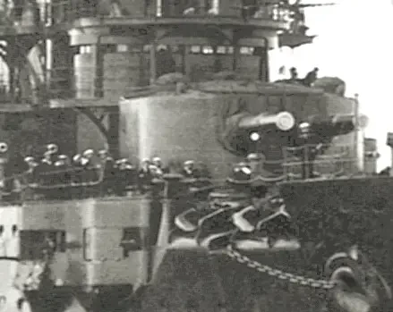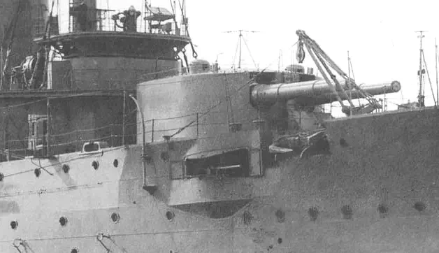 Визуально просвет высотой 10 ½" был уменьшен более чем вдвое. Дальномерная станция была перенесена из боевой рубки на ходовой мостик. Хорошо виден дальномер (предположительно, FQ1), предназначенный для использования на мостиках и открытых платформах. Новые дымовые трубы накрыли выпуклыми ажурными решётками, которых на старых трубах не было.