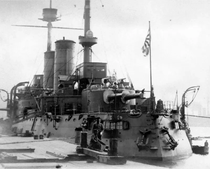 Iwami в Майдзуру (снимок был сделан 3 июня 1905 года, четыре дня спустя после прихода в порт. Обращает на себя внимание осадка корабля).