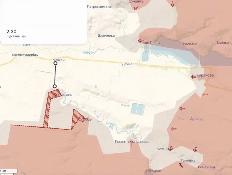 До ключевой для украинских войск на этом направлении автомобильной дороги Н15 Запорожье-Константинополь-Курахово нашим войскам остаётся пройти около 2 км. В связи с этим противник пытается укрепить свои позиции в районе села Улаклы, через которое эта автодорога и проходит и к которому наши войска и движутся.