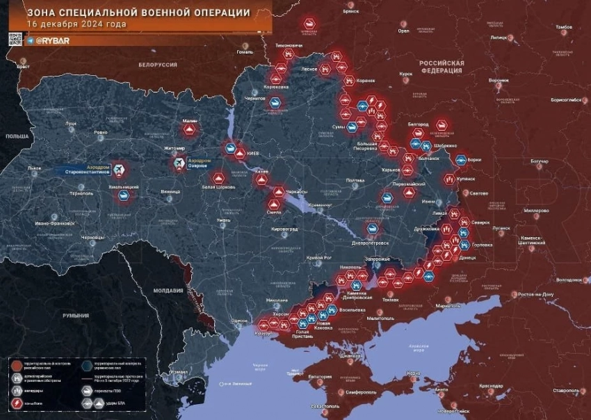 Новая карта боевых действий в зоне СВО на Украине от 17 декабря 2024 года