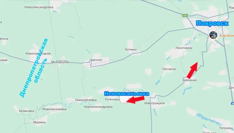 Одновременно с этим российские войска развивают наступление к юго-западу от Покровска. По последним данным, наши войска вошли в населённый пункт Нововасильевка, заняв его часть и продолжая продвигаться в черте села.