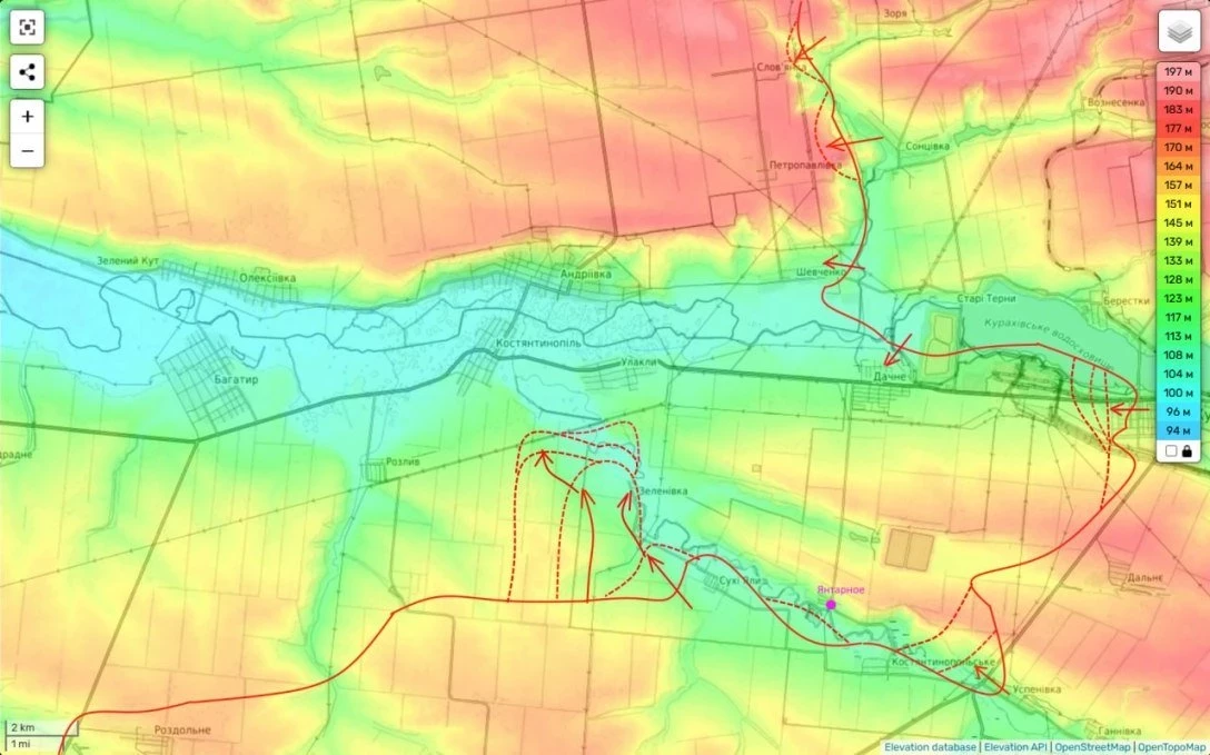 Дальше штурмовать через реку холмы пока не будет достигнут оперативный успех со стороны Ровнополя и трасса на Гуляйполе не будет физически перерезана задача «так себе».