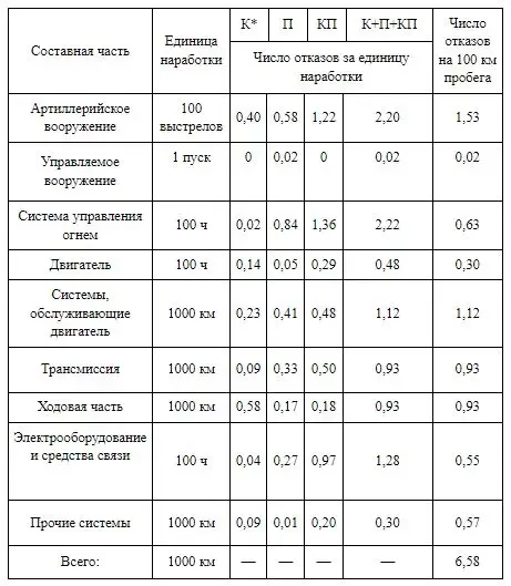 Таблица 2. Распределение параметра потоков отказов составных частей БМП-3 по результатам ВИ-90. *К — отказы, обусловленные несовершенством конструкции (конструкционные); П — отказы производственные; КП — конструкционно-производственные отказы