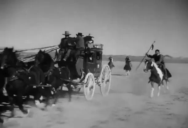 Кадр из кинофильма «Дилижанс». Индейцы апачи преследует почтовую карету!