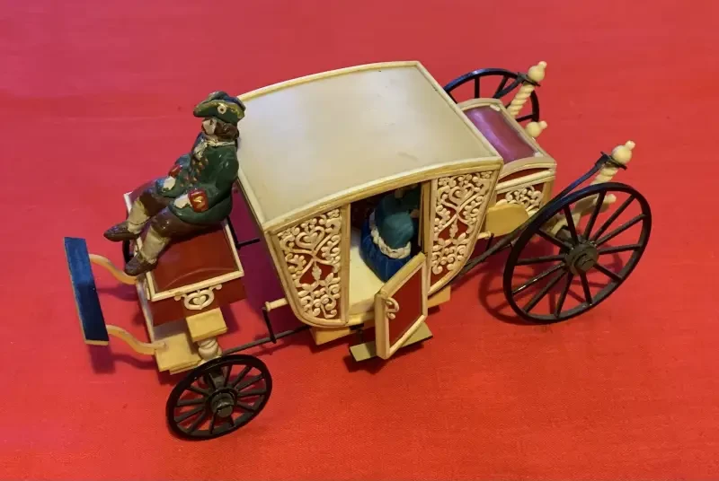 Очень захотелось сделать себе такую игрушку, но… где мне было взять четвёрку коней? А сама карета? Ну, допустим, я мог бы вырезать и склеить саму «кабинку» из картона и бумаги? Но как быть с колёсами? В те годы это было выше моего разумения, а подсказать мне, как это сделать, никто из взрослых не мог.