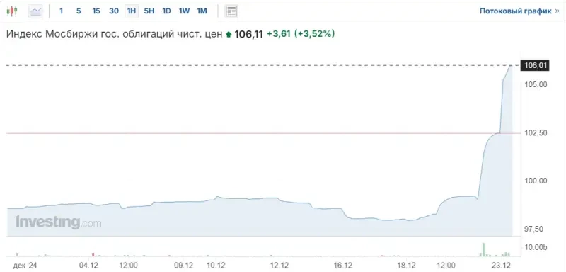 Индекс российских гособлигаций взлетел до максимума с августа 2024 года