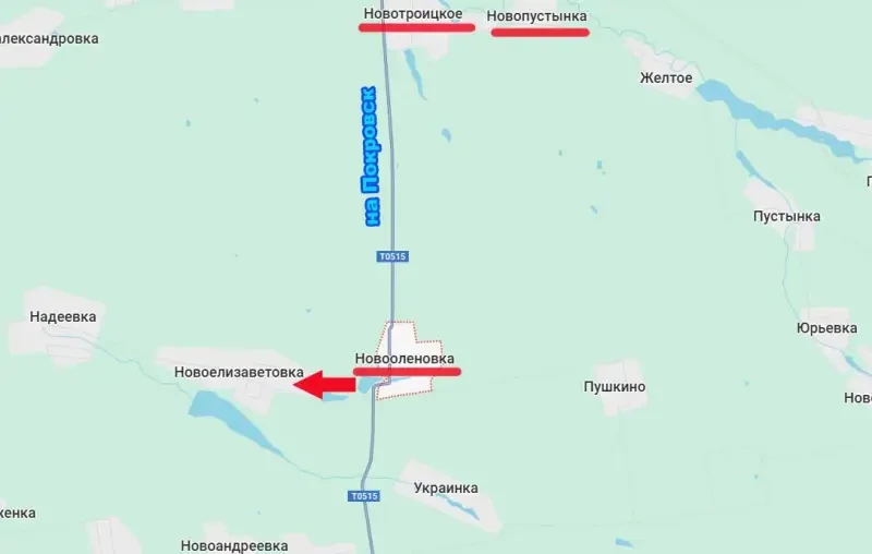 Российские войска продолжают продвижение в западной части Донбасса. По поступающим сообщениям с Покровского направления, российские войска освободили очередной населённый пункт. Им является село Новооленовка (Новоеленовка), что к юго-западу от Покровска.