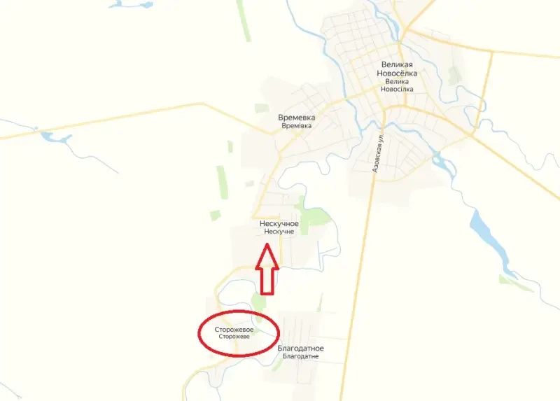 По информации ряда военных ресурсов, после освобождения и завершения зачистки населенного пункта Сторожевое к юго-западу от Великой Новоселки подразделения российской армии приступили к штурмовым действиям в селе Нескучное и продвинулись западнее в районе Новодаровки. Ранее в сети были опубликованы кадры, на которых запечатлен момент водружения флага России в Сторожевом.