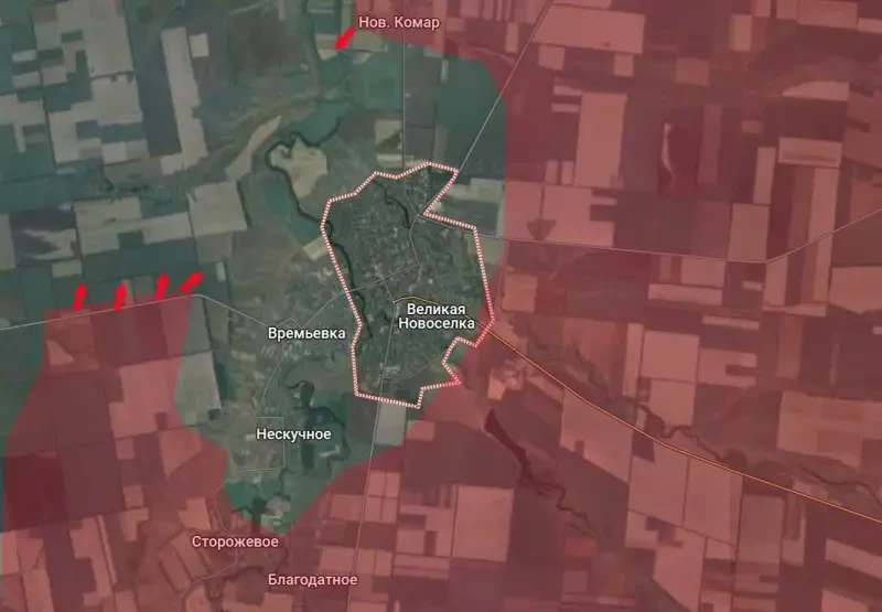 Российские войска развивают успех в районе Великой Новосёлки. Напомним, что летом 2023 года на это направление противник делал значительную ставку, создавая «плацдарм для прорыва к берегам Крыма и Азовскому морю». Этот «плацдарм» в итоге был назван Времевским выступом – по названию населённого пункта, расположенного рядом с Великой Новосёлкой.