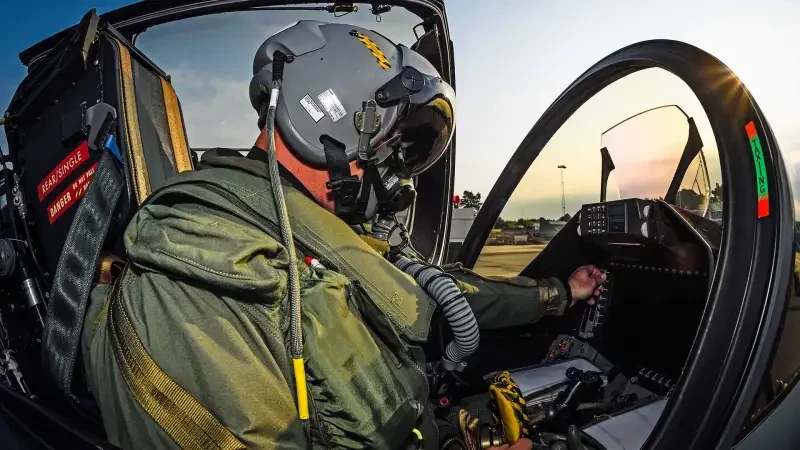 Пилот-испытатель Gripen E в шлеме Targo II.