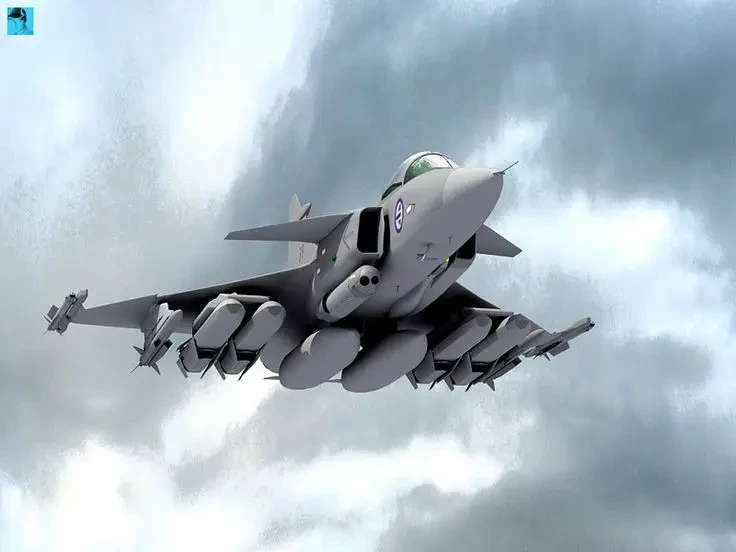 Обратите внимание на подкрыльевые гондолы, где размещаются элементы системы РЭБ на Gripen E