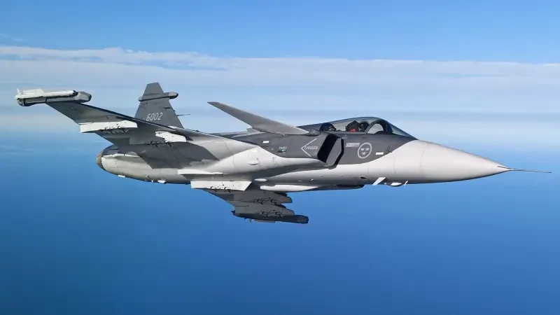 Gripen E может нести до семи ракет MBDA Meteor класса «воздух-воздух», оснащён радаром Leonardo ES-05 Raven с активной фазированной антенной решёткой (AESA) и инфракрасным комплексом поиска и сопровождения (IRST) Leonardo Skyward G. Новая система радиоэлектронной борьбы (EWS) — это особенность, которой Saab особенно гордится. Система предупреждения о приближении ракеты (MAWS) способна отслеживать обстановку вокруг самолета на все 360 градусов.