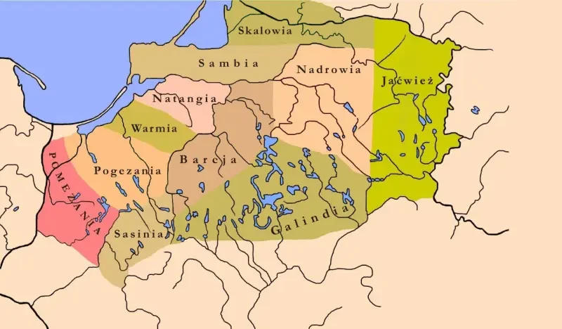 Прусы достаточно легко смешивались со славянами, пришедшими в эти земли несколько позже, примерно в VI веке. Считается, что племена поморян и полабских славян появились от смешения славян с пруссами. Пруссами? Сразу стоит уточнить — мерить ДНК здесь бесполезно: прусские вожди и знать часто брали себе в жёны пленниц из числа полячек, так что вскоре найти чистокровных пруссов стало достаточно затруднительно. Отличали этот народ только язык (быстро впитывавший славянские слова) и религия.