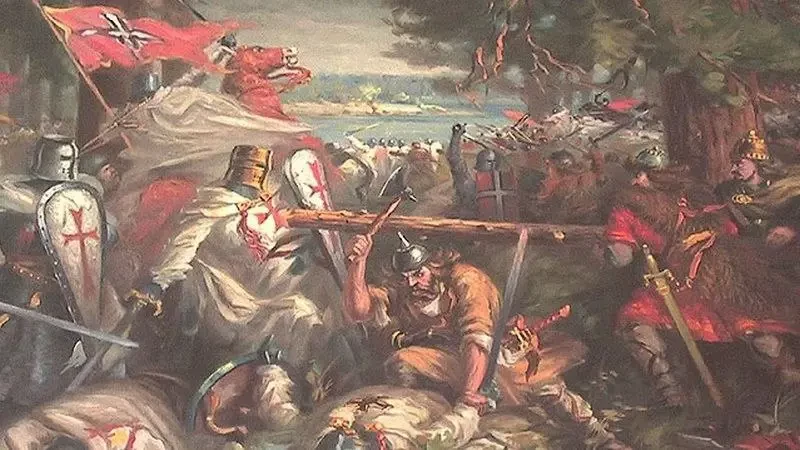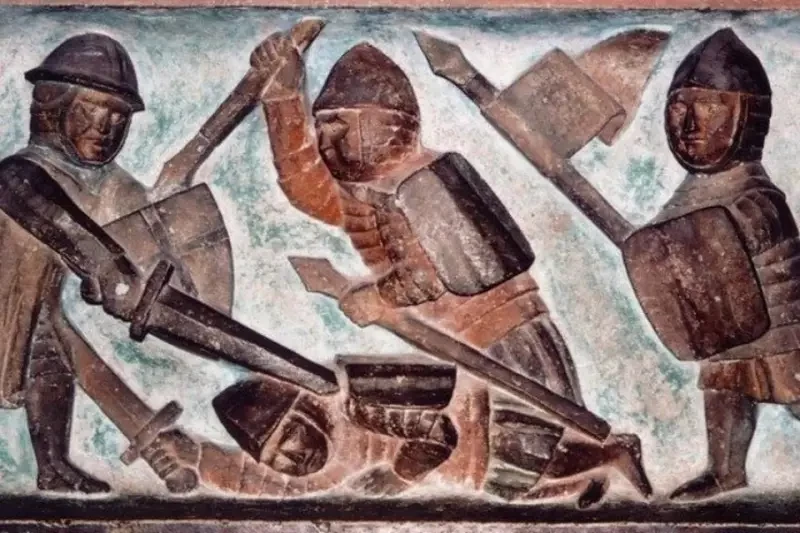 Битва тевтонских рыцарей с пруссами — рельеф собора в Мальборке