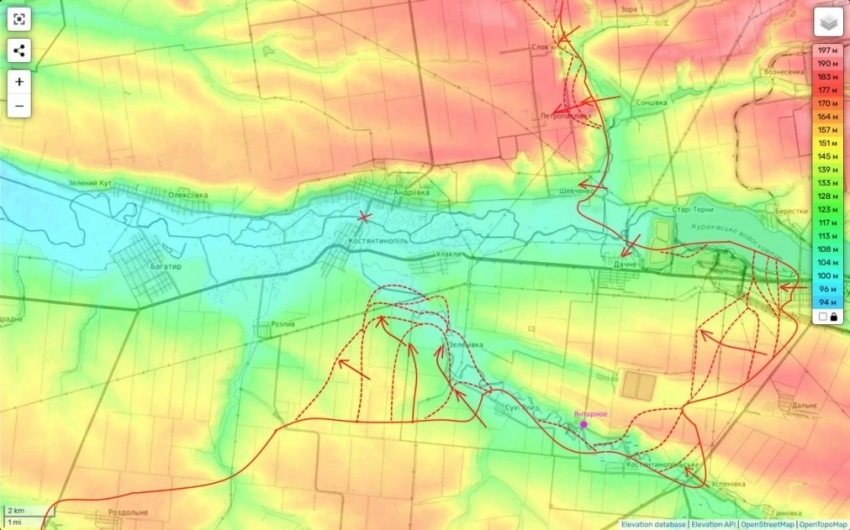 Именно здесь от наших передовых позиций осталось до Днепропетровщины уже менее 7 км.