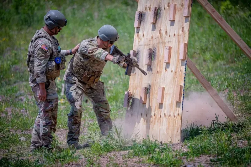 На фото М26 выполняет одну из своих основных изначальных задач – бричинг. Боец 119-й инженерной роты Армии США во время тренировки по бричингу, Кингвуд, Западная Вирджиния, 2 июня 2023 года.
