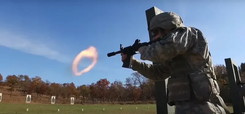 Хотя изначально М26 разрабатывался по заказу Командования специальных операций США, со временем эта система стала явлением довольно массовым и в обычных армейских частях. На фото солдат Армии США во время учебных стрельб из М26. Обратите внимание на огромный огненный шар, вырывающийся из ствола при выстреле, спасибо короткому стволу. Мишени находятся на довольно приличном расстоянии, учитывая, что огонь ведётся из дробовика с экстремально коротким стволом. Но и стреляют по мишеням пулей и картечью, а не дробью.