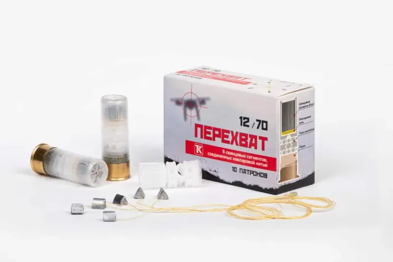 Специальный противодроновый боеприпас от ЗАО «Техкрим», анонсированный летом 2024 года. Аналогичные по конструкции боеприпасы уже предлагают несколько частных производителей в США.