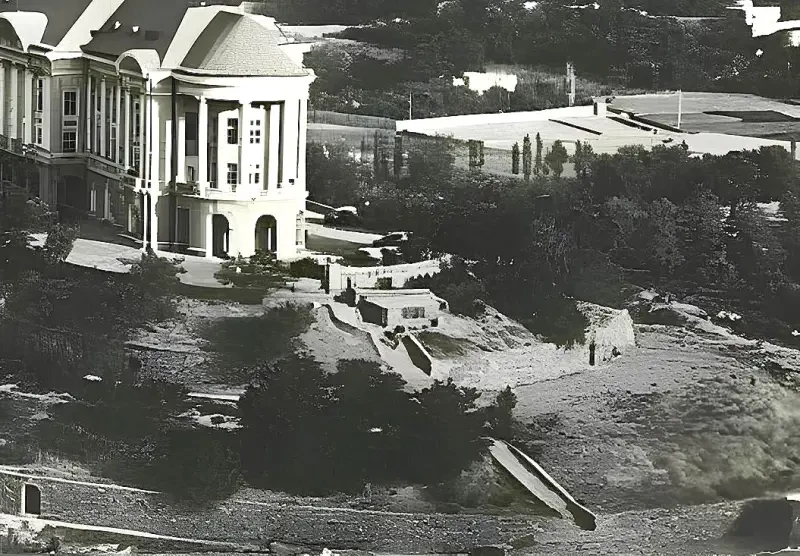 Подход к дворцу, где прорывалась группа Семенова, в правой части фото видна лестница