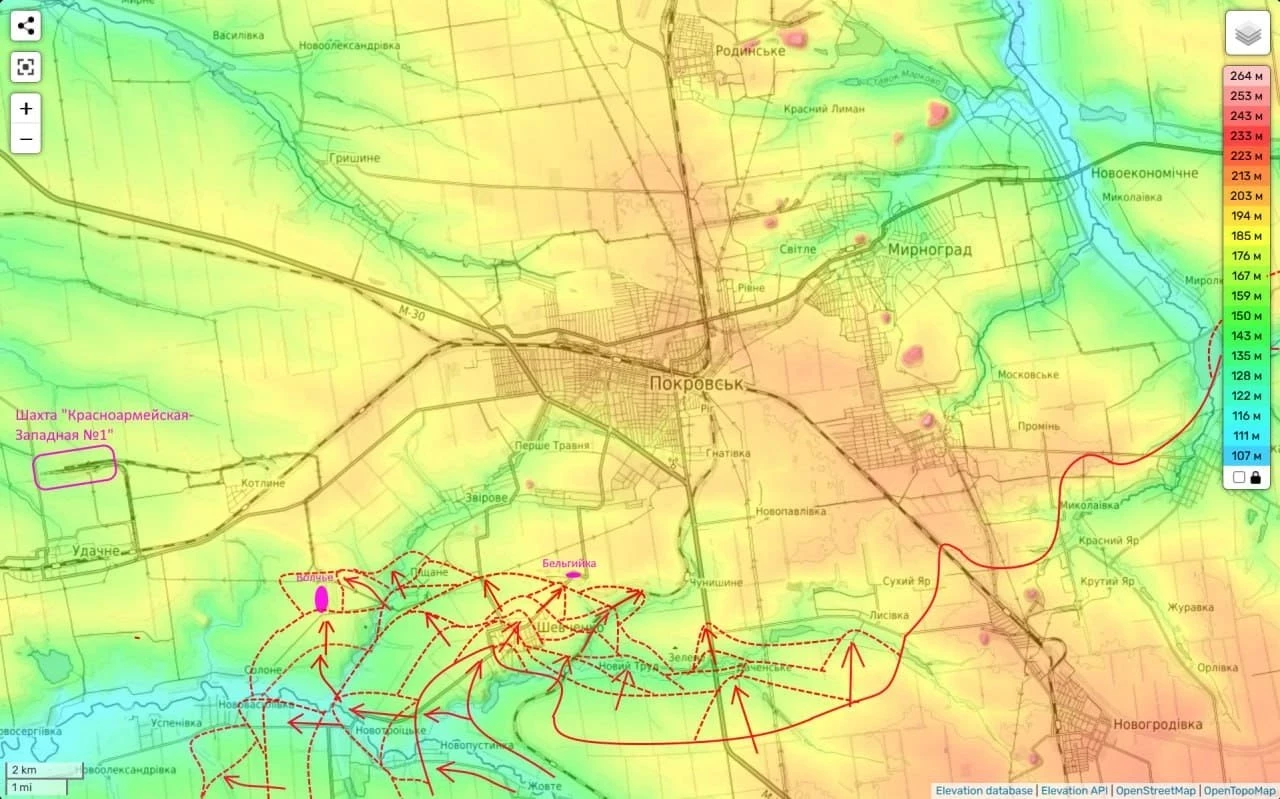 Также уже вчера (также вследствие занятия района Песчаного) усилился наш нажим на жд станцию Чунишино. Её занятие окончательно обнулит значимость рубежа обороны ВСУ в районе Лысвка - Сухой Яр (который противник успешно удерживал на протяжении многих недель) и выведет нас (уже прочно) на южные окраины Покровска.