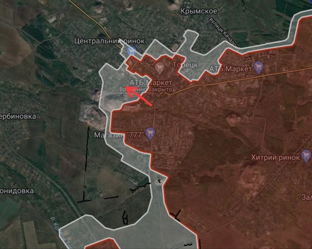 Торецкое направление. В центральной части Торецка российские войска атакуют по направлению террикона шахты №10. Наши бойцы продвигаются севернее кварталов многоэтажек вдоль улицы Леси Украинки, а также к террикону №1 шахты «Торецкая», сообщает военкор Евгений Лисицын в своём Telegram-канале.