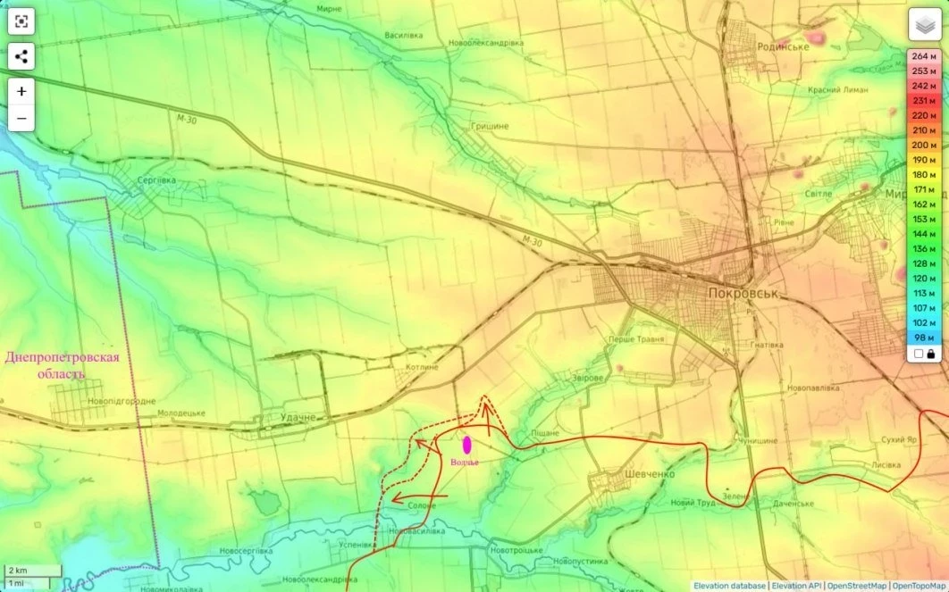 Во первых, это район - Васильевки - Успеновки. Данное направление является левым флангом главного охвата Покровска с запада. Его занятие является очень важным для наступления на Удачное, из-за чего обе стороны уделяют особое внимание боевым действиям в долине реки Солёное.