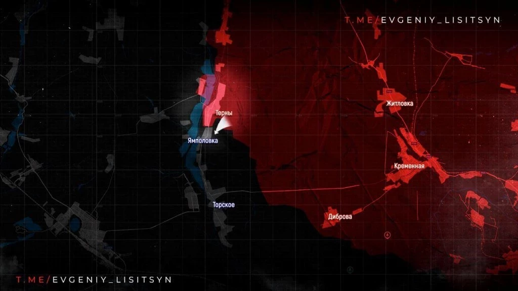 Кременское направление. Наши штурмовики продвинулась в районе балки Круглая под Тернами на участке шириной до 2.4 км. Также нашим штурмовым подразделениям удалось продвинуться северо-западнее Ивановки за рекой Жеребец.