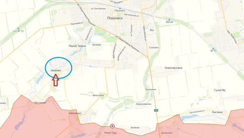 Ряд украинских мониторинговых ресурсов сообщает, что подразделения ВС РФ вышли на окраины населенного пункта Зверево, являющегося пригородом Покровска (Красноармейска).