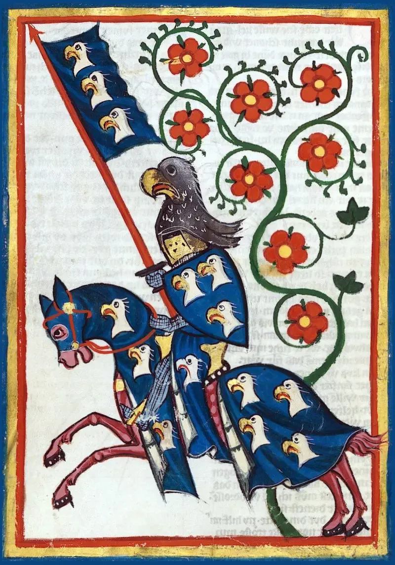 Рыцарь-миннезингер Дир фон Кюренберг, XII в. «Манесский кодекс»