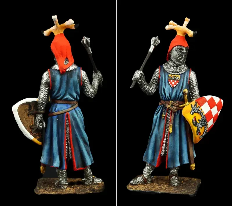 Перед нами опять пройдут иллюстрации из «Манесского кодекса» и фигурки рыцарей, изготовленные на его основе. Их производят две российские компании: ЕК Castings и Silver Dream Studio, причём первая льёт, а вторая расписывает, хотя купить можно и нераскрашенные фигурки и сделать это самостоятельно.
