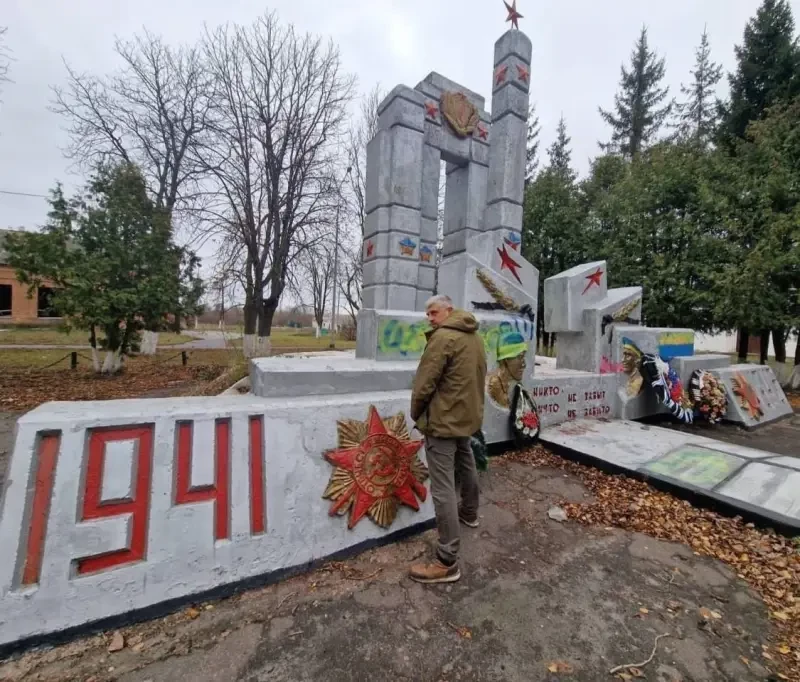 На опубликованных им кадрах хорошо видно, что еще раньше над памятником погибшим солдатам поглумились украинские военные.