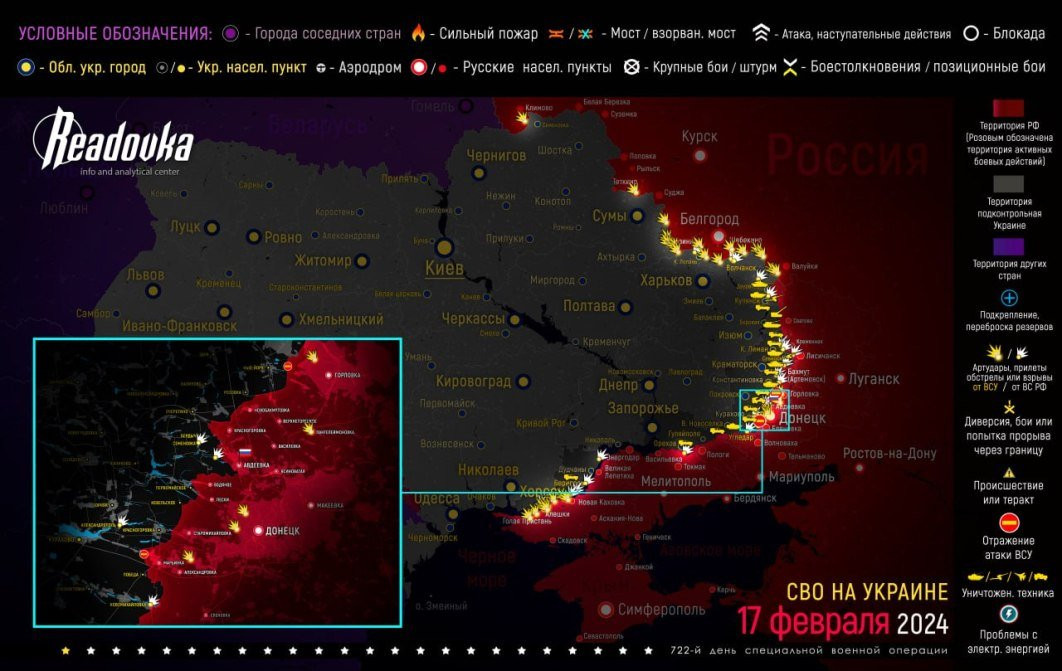 Последние новости СВО от 18 февраля 2024. Карта боевых действий на Украине на сегодня, военная сводка