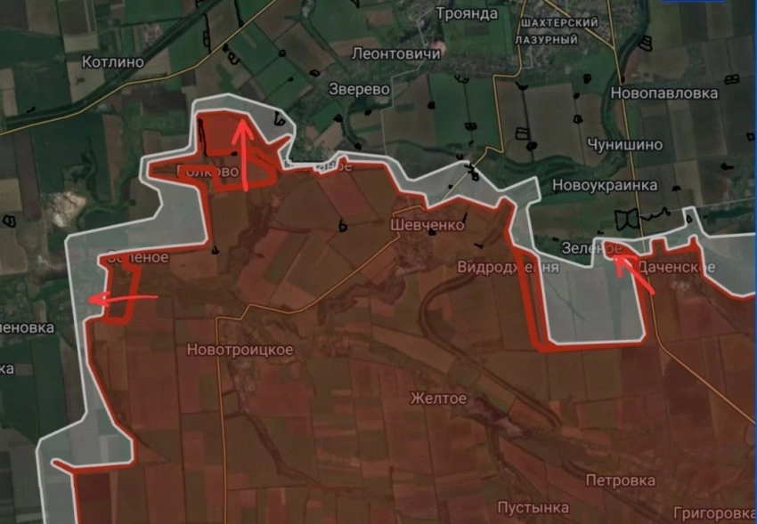 Купянское направление. На данном направлении российские бойцы сумели прорваться. В частности, они атаковали севернее Лозовой с использованием большого количества бронетехники и продвинулись на 3.5 км на рубеже Загрызово - Лозовая.