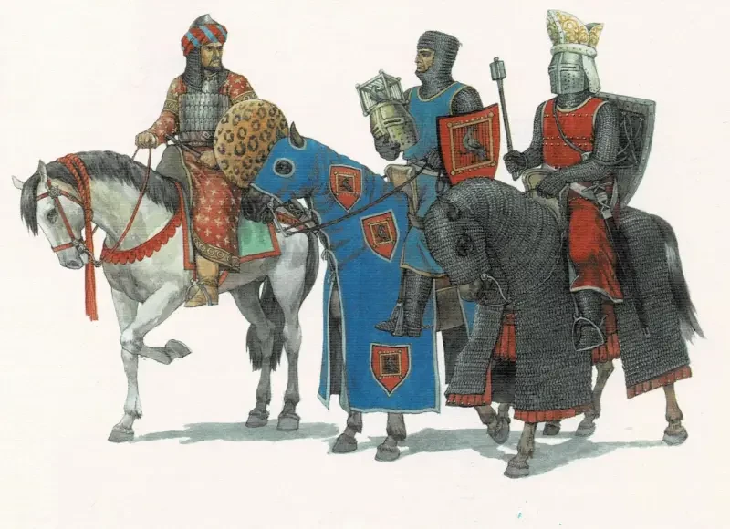Вот эта иллюстрация к книге «Рыцари. Замки. Оружие» (Росмэн, 2005). На ней рыцарь Вальтер фон дер Фогельвейде изображён в самом центре