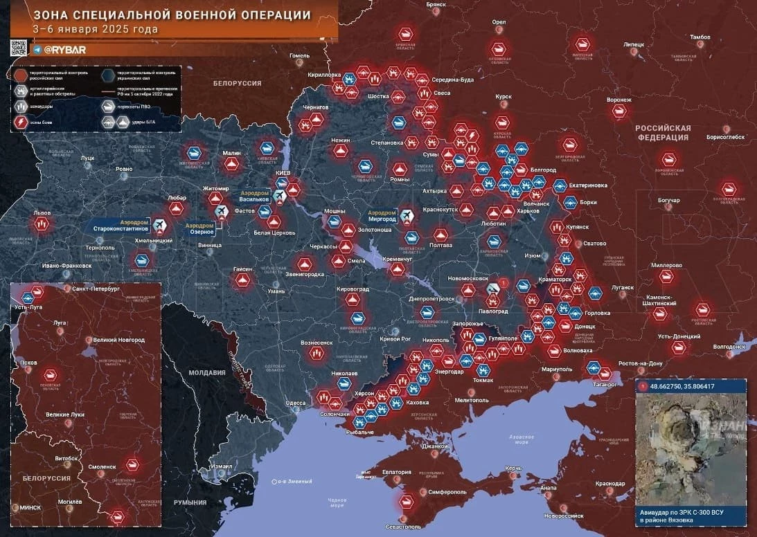 Новая карта боевых действий в зоне СВО на Украине от 7 января
