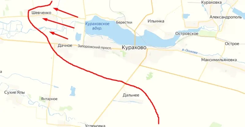 Сообщается, что российские военные установили флаг в н.п. Шевченко на Кураховском направлении