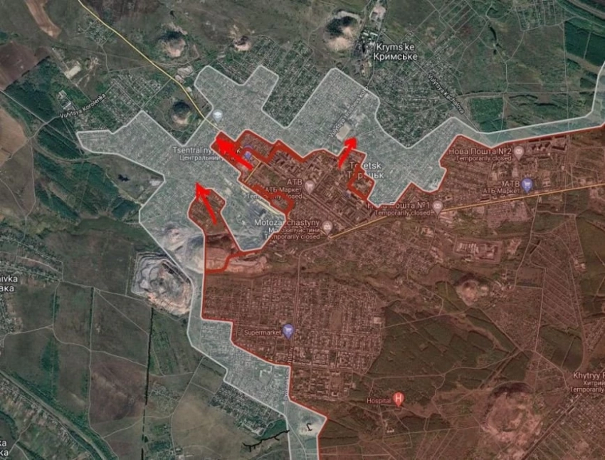 Торецкое направление. ВС РФ имеют тактические успехи в западной, северо-западной, северной и центральной частях Торецка, продвинулись северо-западнее Центрального рынка на глубину до 250 метров, сообщает Telegram-канал "БелВПО".