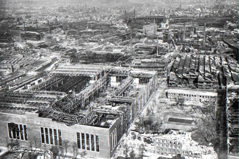 Руины сталеплавильного завода Круппа в 1945 году