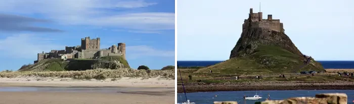 Фото слева: замок в Бамбурге, захваченный у бриттов и ставший столицей Берниции. Фото справа: остров Линдисфарн (Lindisfarne), расположенный в непосредственной близости от бернийской столицы Бамбурга, по-видимому, был важным местом в ранних сражениях между бриттами и англами на севере. Об этом периоде мало что известно, но именно на этом острове в 590 году Уриен из Регеда, организатор борьбы бриттов против англосаксонских завоевателей и прототип одного из персонажей легенд о короле Артуре встретил свою смерть, сражаясь с англосаксами. Фотограф: Дэвид Симпсон (David Simpson)