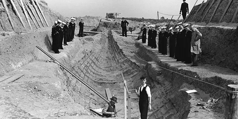 Раскопки захоронения корабля в Саттон-Ху (Sutton Hoo), 1939 год. На этом месте, в английском графстве Саффолк, в 1938-1939 годах были сделаны самые значительные археологические находки в истории Британии, включая нетронутый погребальный корабль англосаксонского короля. Фото: Барбара Вагстафф (Barbara Wagstaff).