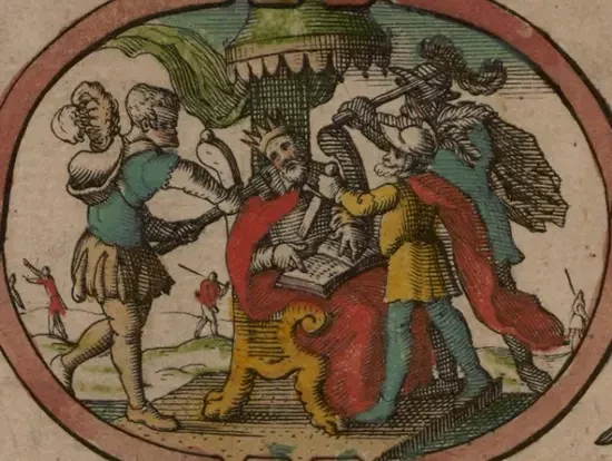 Изображение южносаксонского короля Этельваля из книги Джона Спида «Театр империи Великобритании», которая была опубликована в 1611/1612 годах
