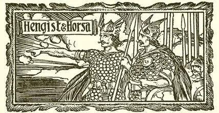 Согласно английским преданиям, переселению в Британию предшествовало появление в 449 году небольшого отряда, предположительно ютов, под предводительством братьев Хенгиста и Хорса на трех кораблях причалила к берегам полуострова Танет (современное графство Кент). Вождь бриттов Вортигерн заключил с ними договор, по которому дружина Хенгиста обязалась сражаться с пиктами и скоттами, а бритты, в свою очередь, обещали снабжать их продовольствием. Взамен германские наемники получили бы некоторую территорию и ресурсы. Конечно, этот план в конечном итоге дал обратный эффект — англосаксы были недовольны своей частью сделки и в конце концов они выступили против бриттов и начали завоевывать больше территорий, что в конечном итоге и привело к созданию Англии.