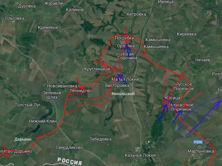 По словам военного эксперта, российские подразделения действуют "широким фронтом". Они уже захватили населенный пункт Кругленькое и, местами, форсировали реку Малая Локня, закрепившись у Старой и Новой Сорочины, а также на окраинах Викторовки и Никольского. Одновременно идет наступление с востока, через Русское Поречное.