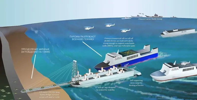 Как утверждается, на Тайване очень мало мест на побережье, пригодных для высадки десанта. Все такие места надежно прикрыты и заминированы. С помощью десантных барж Китай сможет решить задачу высадки техники и личного состава на остров.