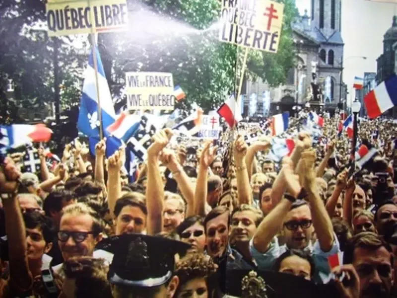 А во-вторых, 24 июля 1967 г. президент Франции Шарль де Голль, впервые прибывший в Канаду с официальным визитом, публично заявил в Монреале об «исторической самостоятельности, особой миссии французской нации в Северной Америке» и выдвинул в эпилоге выступления лозунг: