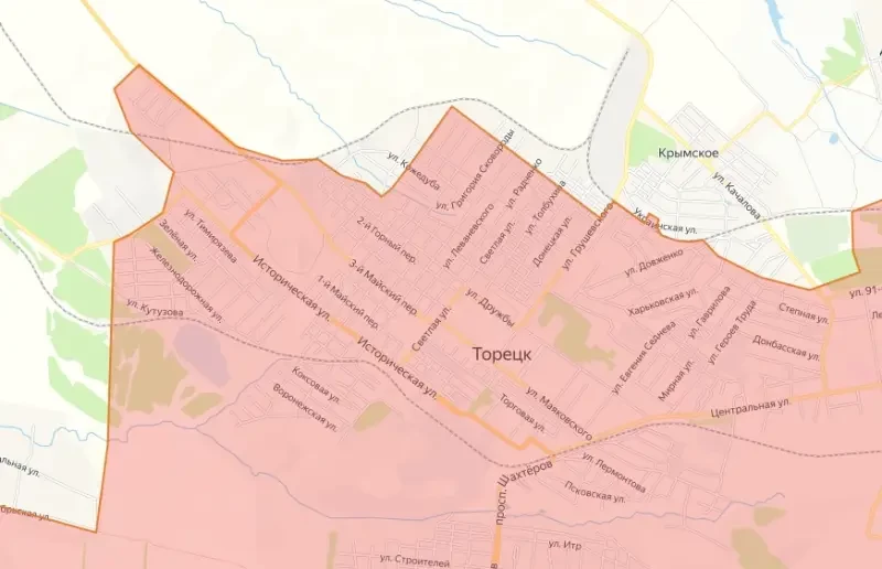 Между тем, российские военкоры сообщают, что в Торецке подразделения ВС РФ уже установили контроль над северной окраиной города – микрорайоном «Фомиха». Несмотря на то, что ВСУ пытаются удерживать позиции на западной окраине шахты «Торецкая» и в соседнем поселке Крымское, практически вся территория Торецка уже полностью под контролем армии России. К западу от города ВС РФ атакуют в районе Щербиновки и Петровки. После полного освобождения Торецка и его окрестностей наши войска могут продвинуться на запад от Торецка и Щербиновки и вдоль трассы Торецк-Константиновка к Константиновке.